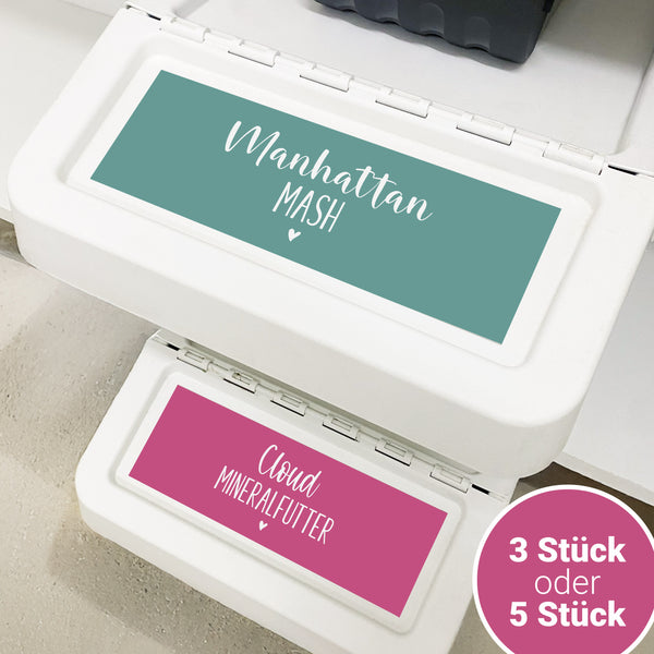 Die Aufkleber passen perfekt auf die Deckel. Endlich Ordnung in der Futterkammer: Jeder weiß sofort, wem welche Tonne gehört. Praktisch, stilvoll und einfach schick.