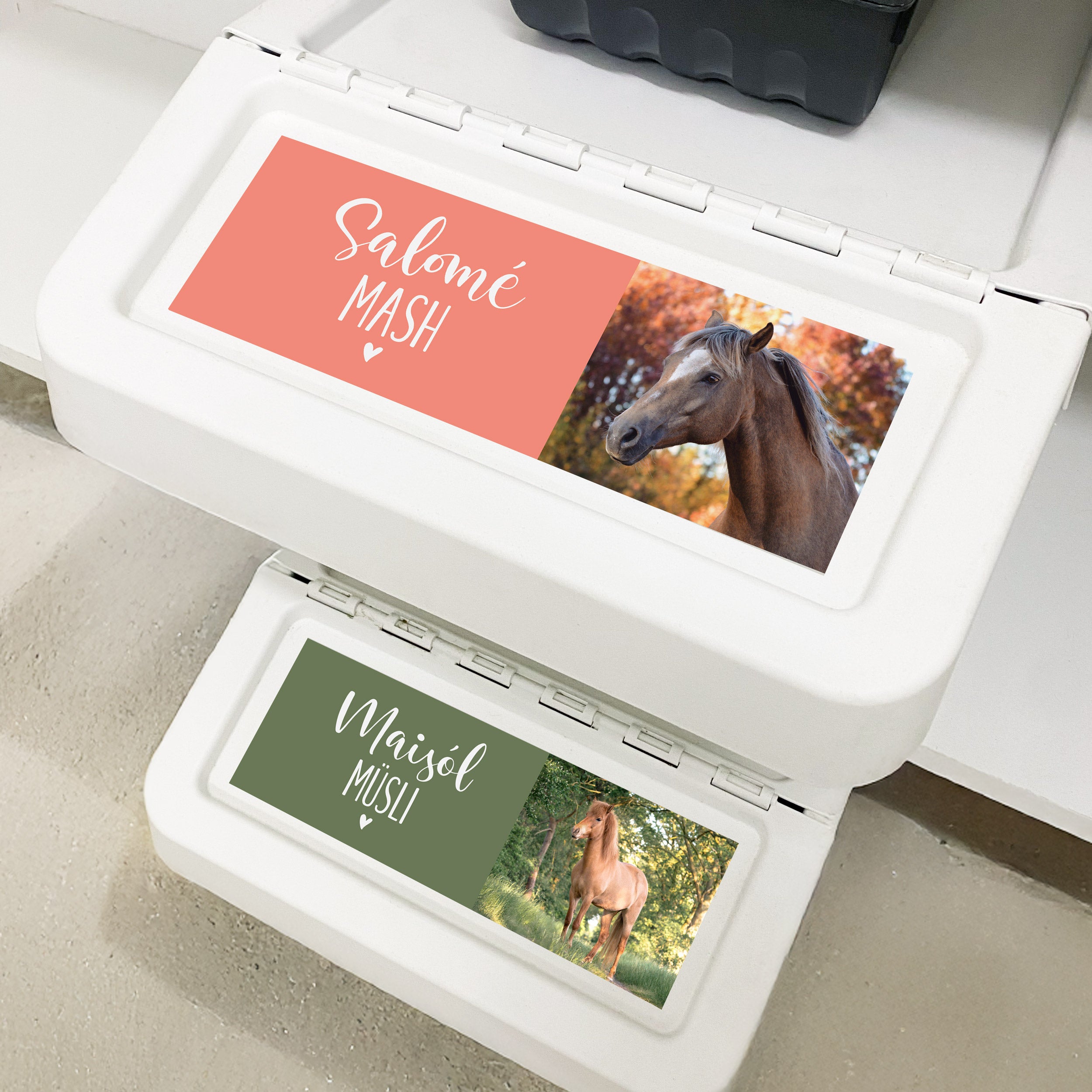 Futtertonnen Aufkleber mit Foto | Sattelkammer | Pferd, Islandpferd, Pony