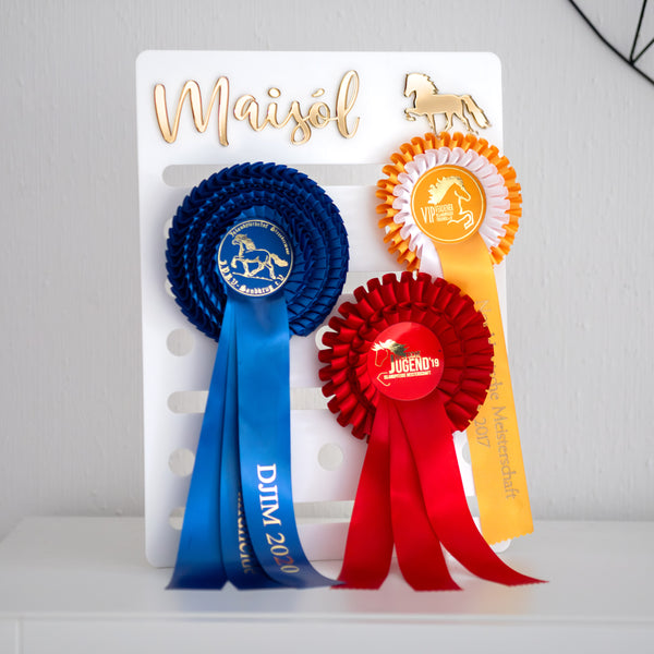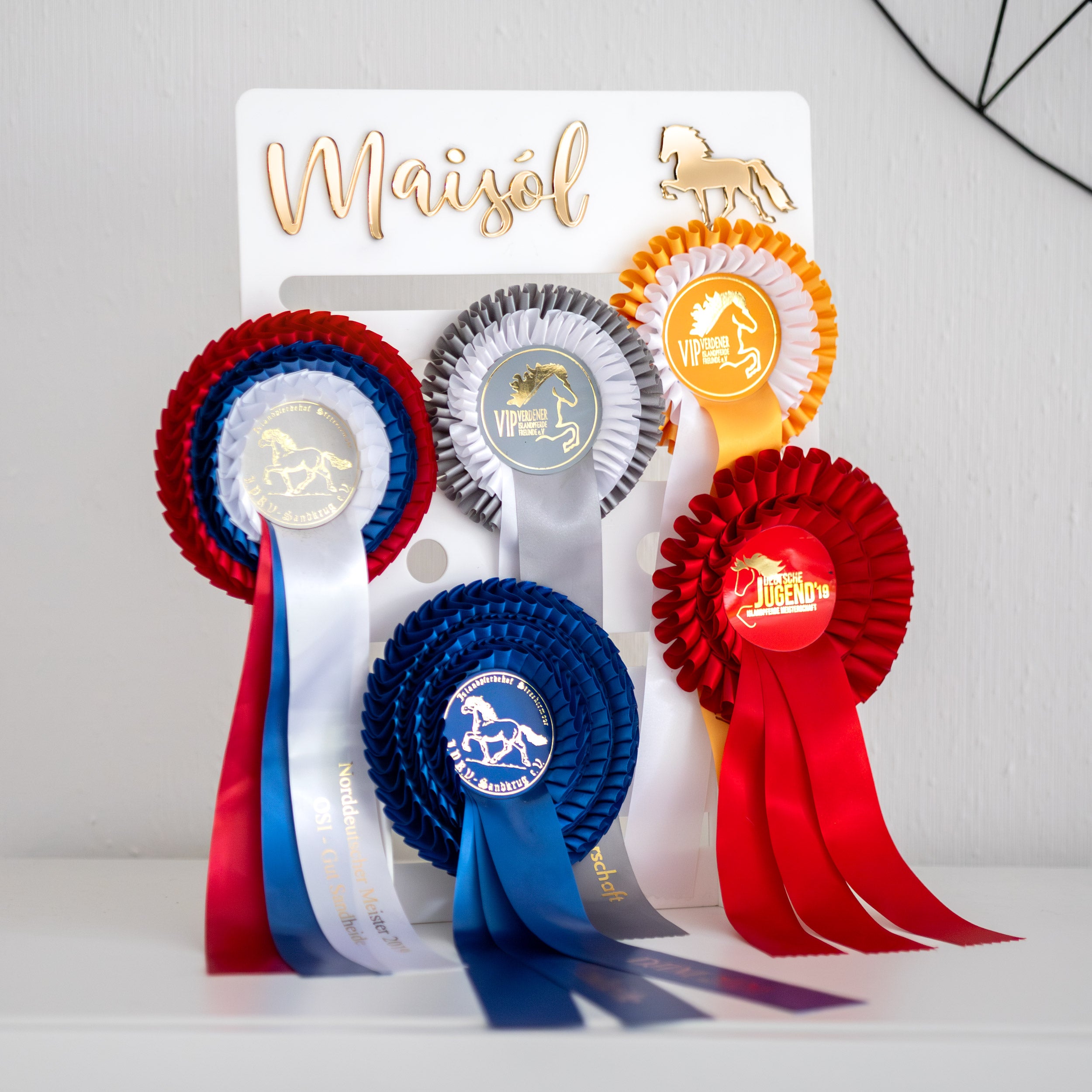 Turnierschleifen-Aufsteller mit Name & Symbol | Schleifen, Turnier, Erinnerungen, Schleifenhalter | Pferd, Islandpferd, Pony | Dressur, Springreiten